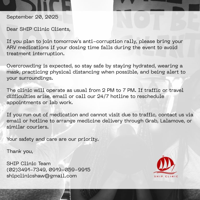 Announcements/Bulletin - SHIP Clinic Philippines | Accessible HIV & Primary Care Services