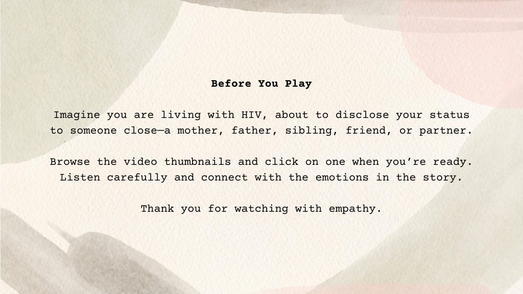 This project aims to foster empathy and reduce stigma by offering a nuanced glimpse into the many feelings surrounding HIV status disclosure.